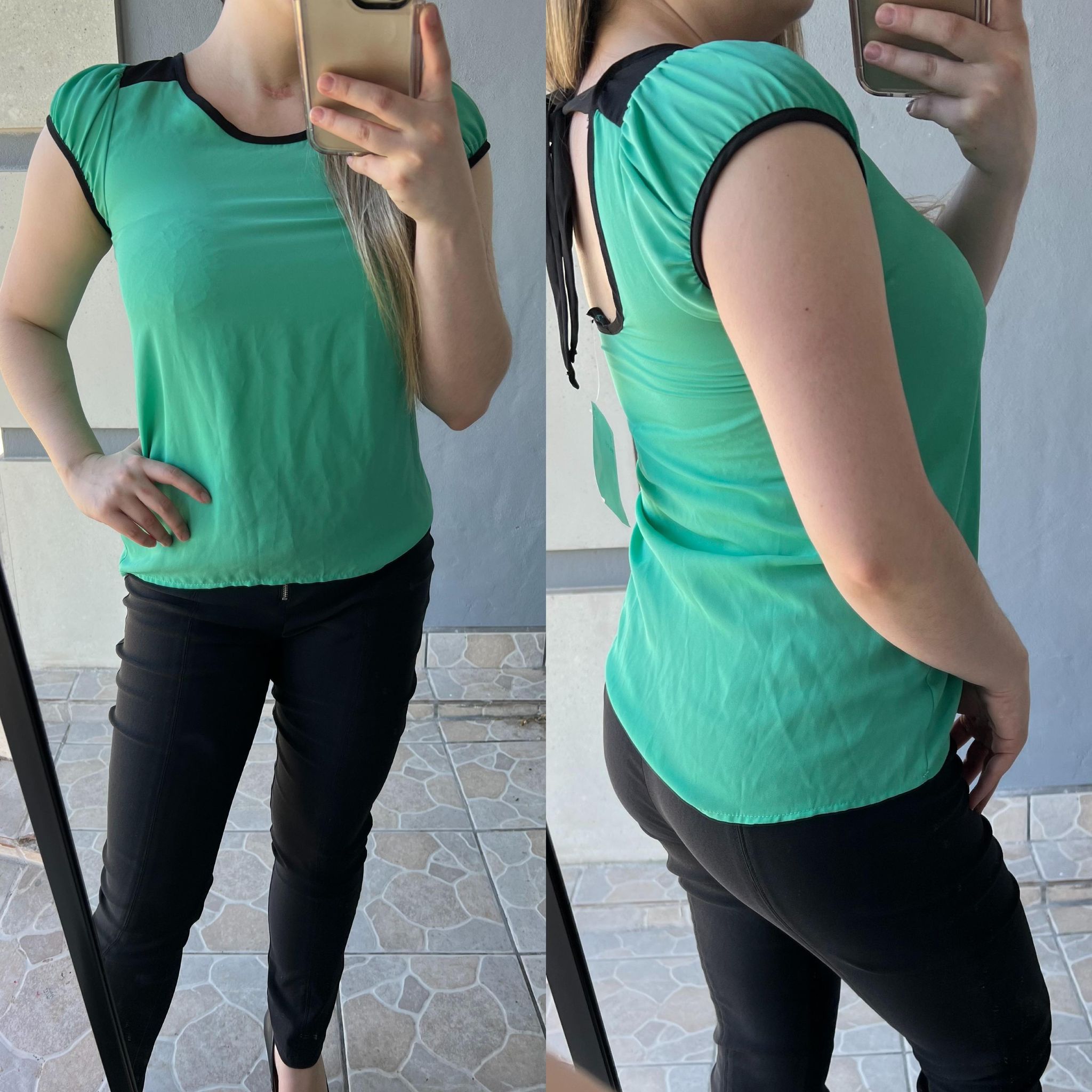 Green back tie blouse - S