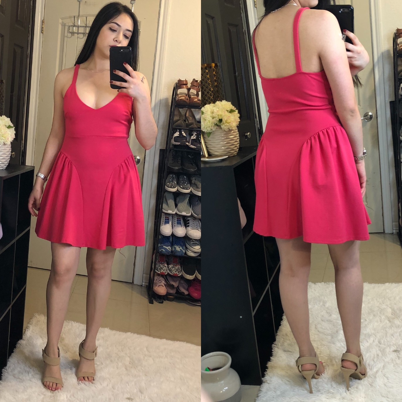 Pink Flare Bodycon Dress - M
