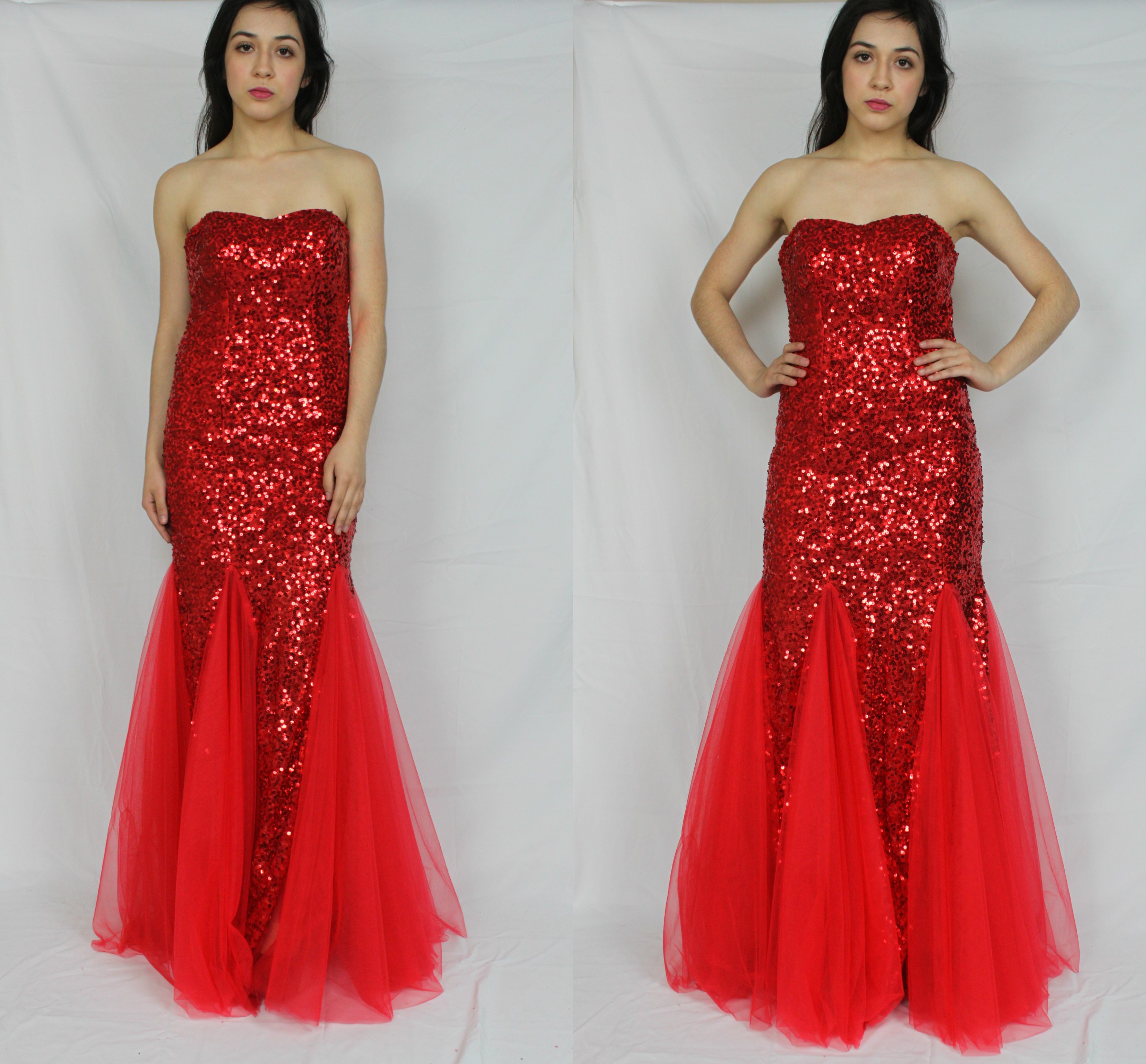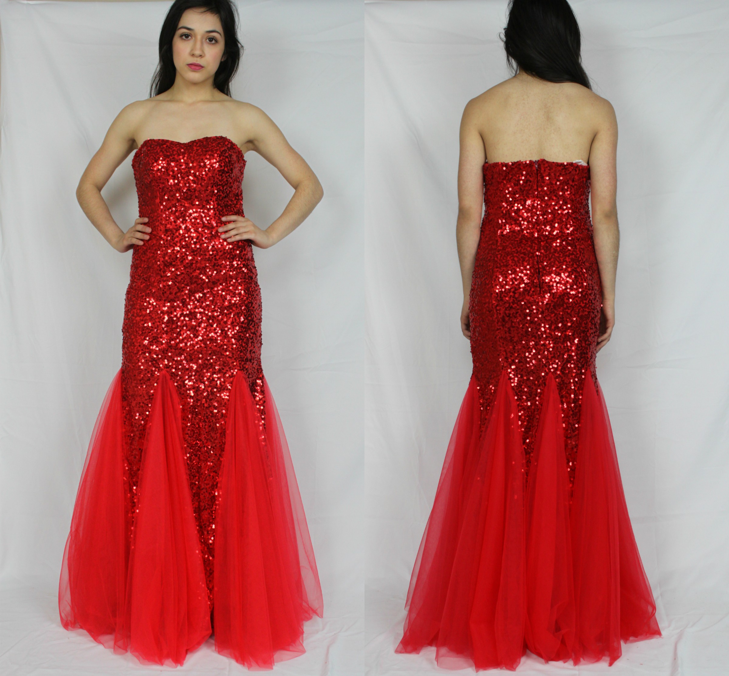 Red Sequence All Around Mermaid Prom Dress - M/L