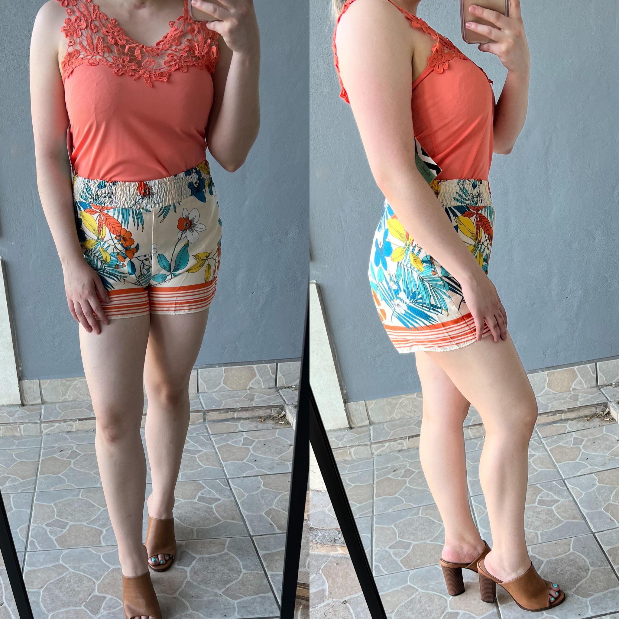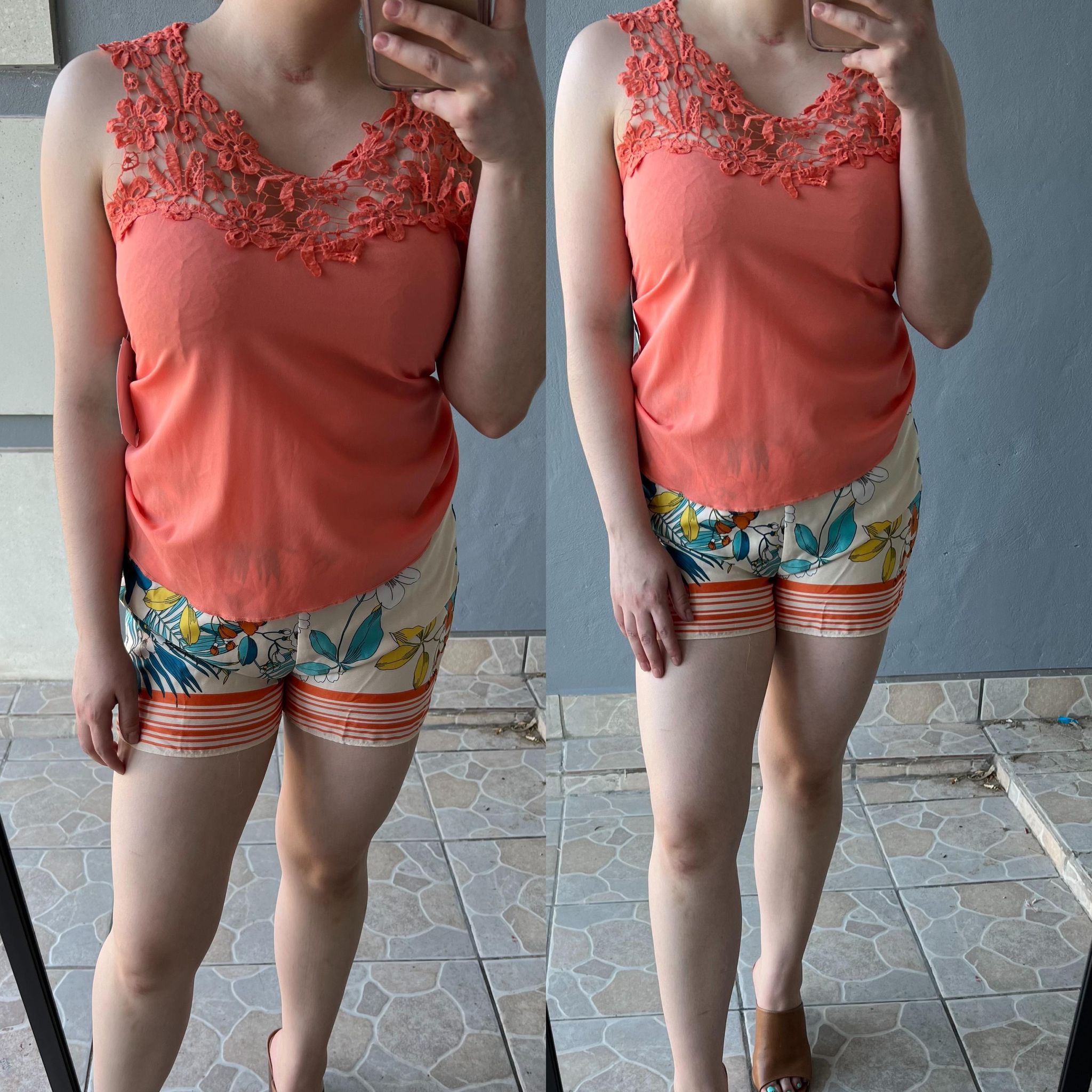 Coral Floral Lace blouse - S